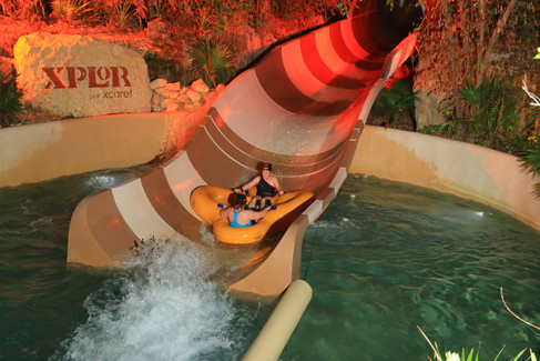 I was tired after this fun day, but the gang convinced me that we had to go to Xplor Fuego. It's a completely different experience at night, they said, and in the end I figured if I was going to make the most of the trip, I needed to do this. It was go time.
