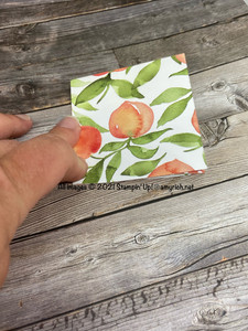I cut the You're a Peach Designer Series Paper 4" x 5", then I cut 3/4" off the left edge of the 5" length to put along the "binding" of this book fold card.