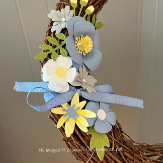 Each flower's little details were considered as I assembled the flowers and adhered them to the wreath. Watch as I made several of the flowers during What's Up! Stampers this past Wednesday, all while remembering that these dies are definitely not just for cards.