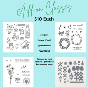In addition to these amazing Suites we're sharing live on Facebook, we are also offering four informative Add-on classes. In these Add-ons, we will each have a second product or products on which we will focus. These Add-on classes will be pre-recorded and accessible on YouTube any time after the live event, and each will include another make 'n take. A separate email will be sent with the links to the Add-on class/classes you choose. There is no obligation to take Add-on classes when you register for Stampin' Into Summer, but we definitely encourage you to participate. We'll have lots to share and show. The Add-on classes we're offering are the following: